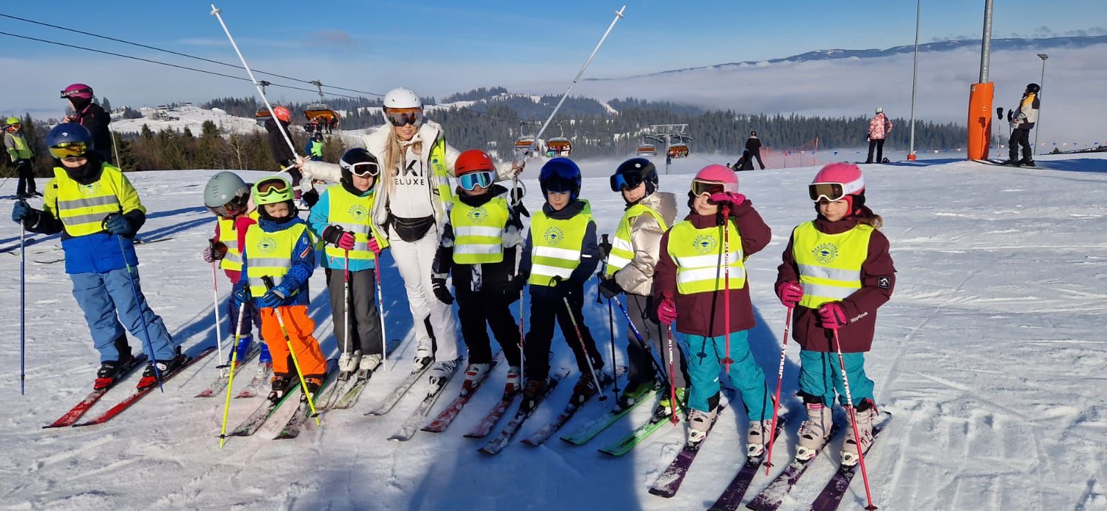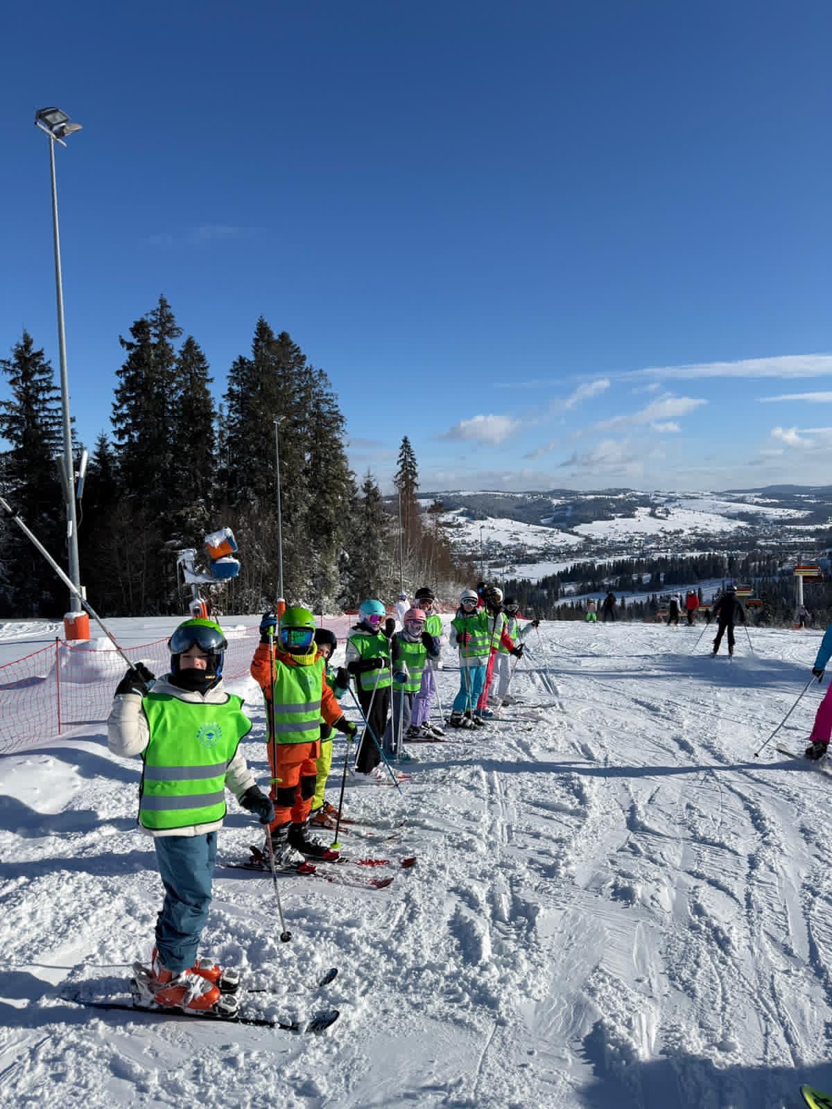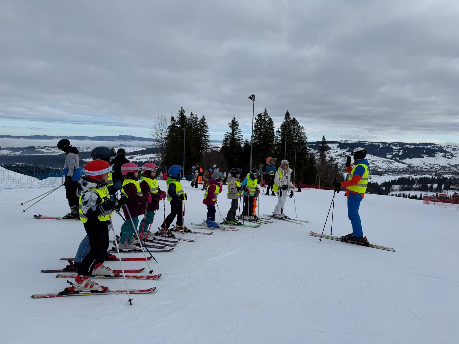 Podczas pobytu uczyliśmy się jazdy na nartach pod okiem instruktorów. Dla wielu uczniów były to pierwsze kroki na stoku, ale wszyscy wykazali się ogromną odwagą i wytrwałością. Każdy dzień przynosił widoczne postępy – od nieśmiałych zjazdów po coraz pewniejsze pokonywanie tras.