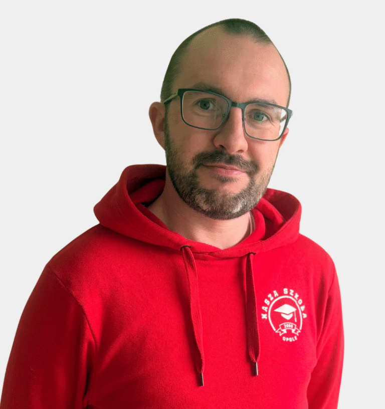 Z wielką pasją naucza języka angielskiego w klasach 1 i 2. Nauka przez zabawę to najlepsze rozwiązanie, ponieważ przekazywanie wiedzy na różnych płaszczyznach ułatwia zapamiętywanie. Zawsze uśmiechnięty i pomocny. Prywatnie wielki fan fantastyki, historii oraz przyrody.